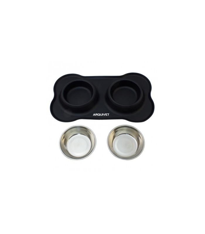 Comedero doble - Cuencos de acero inoxidable (2x400ml) con base de silicona antideslizante