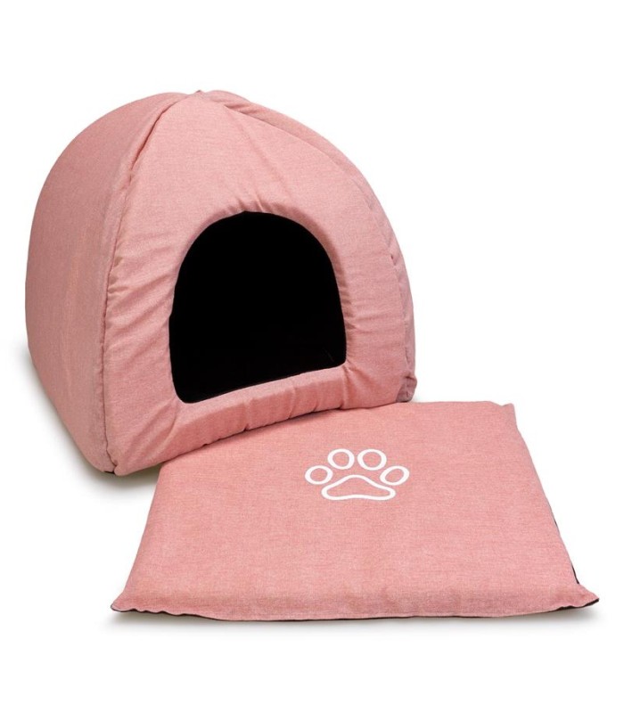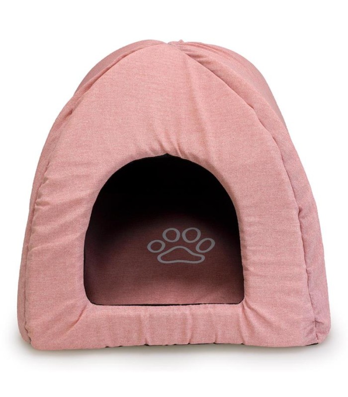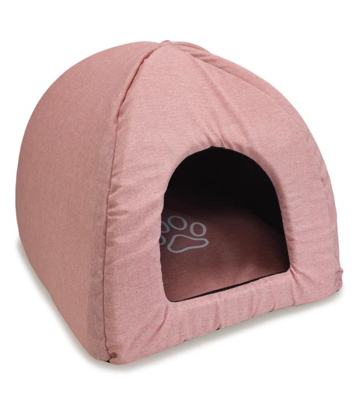 Iglú Para Perros Rosa con Huella y Ribete 40x40x45cm