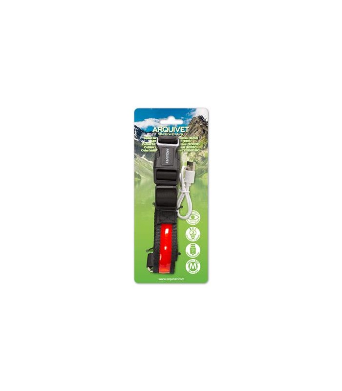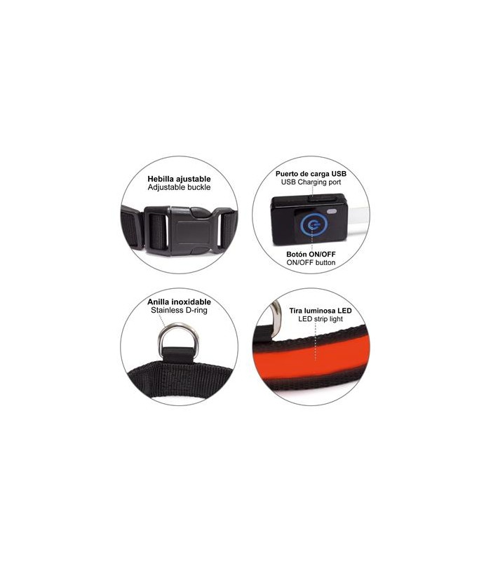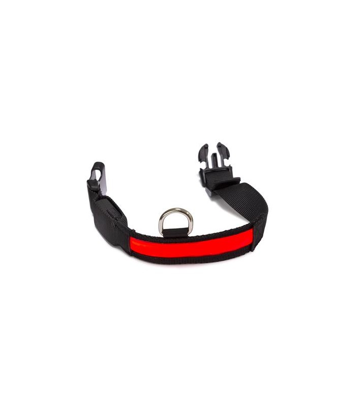 Collar luminoso LED para perros, de nylon resistente. Ajustable mediante hebilla de plástico. Dispone de anilla para conectar cualquier tipo de correa. Para saber en todo momento donde está nuestra mascota cuando paseamos de noche.