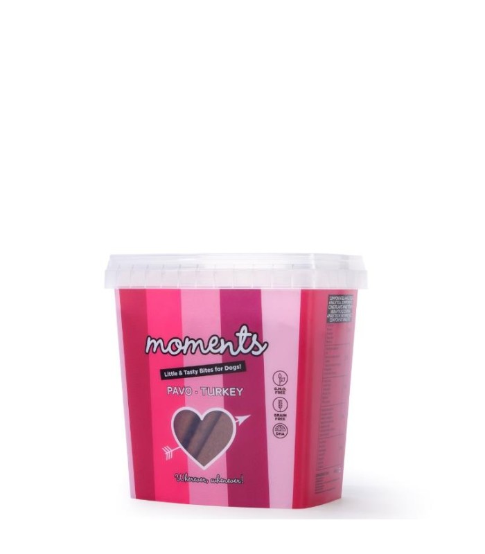 Composición: Pavo fresco (70%), patata, ave deshidratada, pulpa de manzana, aceite de salmón (5% DHA), arándanos.