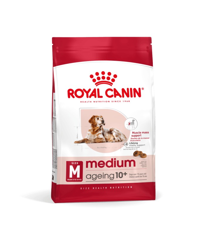 Alimento completo para perros sénior de razas medianas (de 11 a 25 kg) - A partir de los 10 años de edad.
